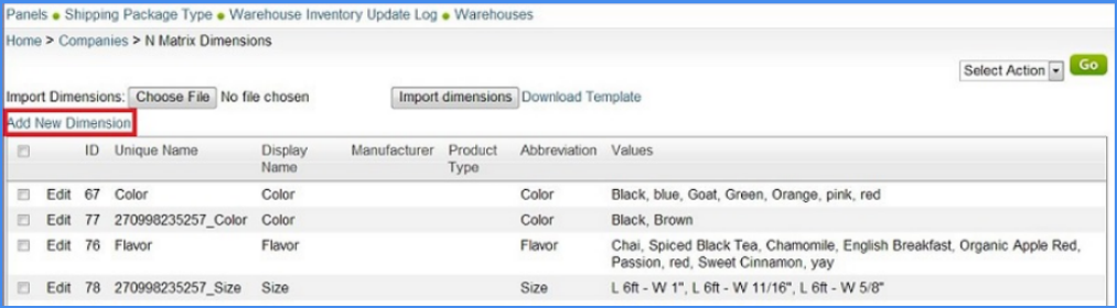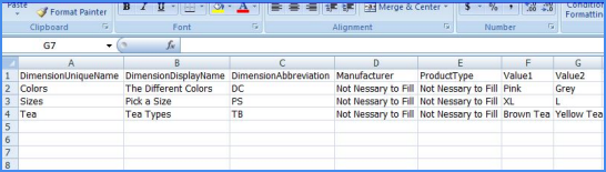 - If you have more dimensions for this n-matrix, add more columns with that dimension name as the header. If dimensions or values entered do not exist in SellerCloud, they will be created with this file import.