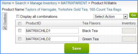 - On the parent product's Product Summary, click Toolbox > N-Matrix > Matrix General.