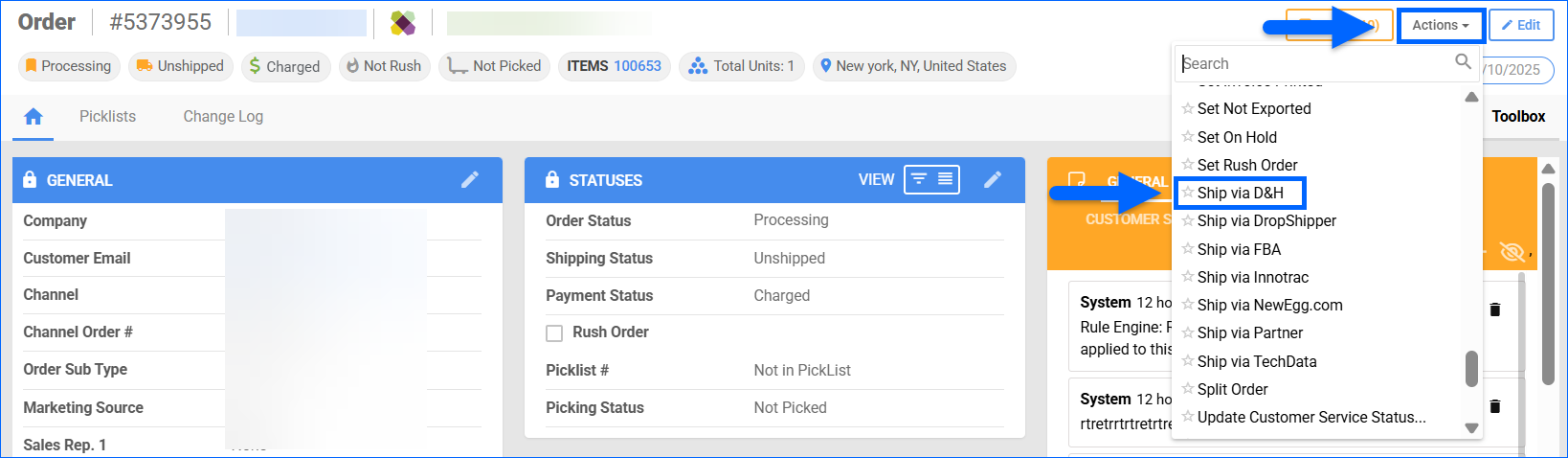 You can export Sellercloud orders to D&H both individually and in bulk.
