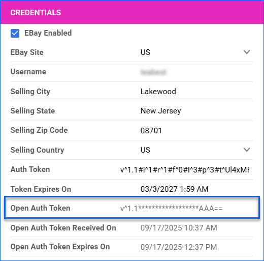 The Open Auth Token Expires On field indicates the date and time before which you must repeat the same steps to refresh the token.