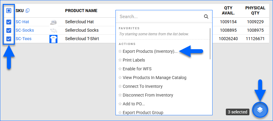 - Click the Actions icon and select Export Products (Inventory).