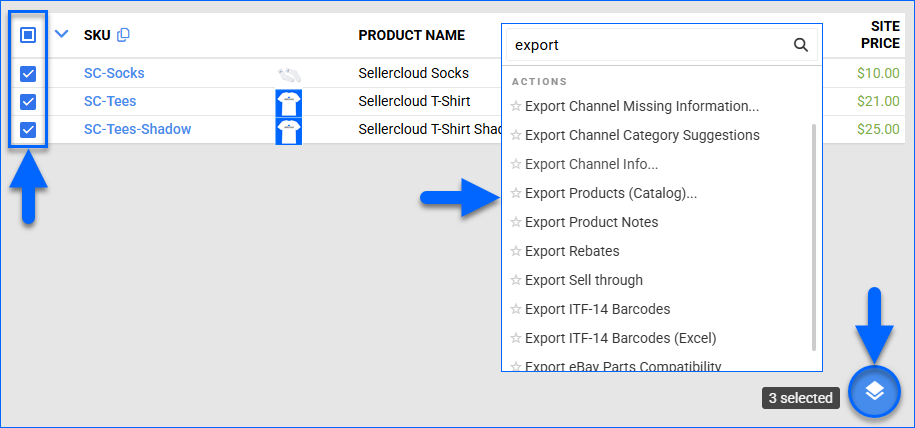 The following options for product export are available in Sellercloud.