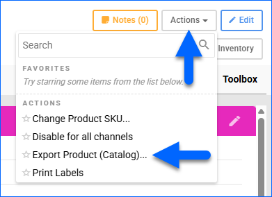 - Click Actions and select Export Product (Catalog).