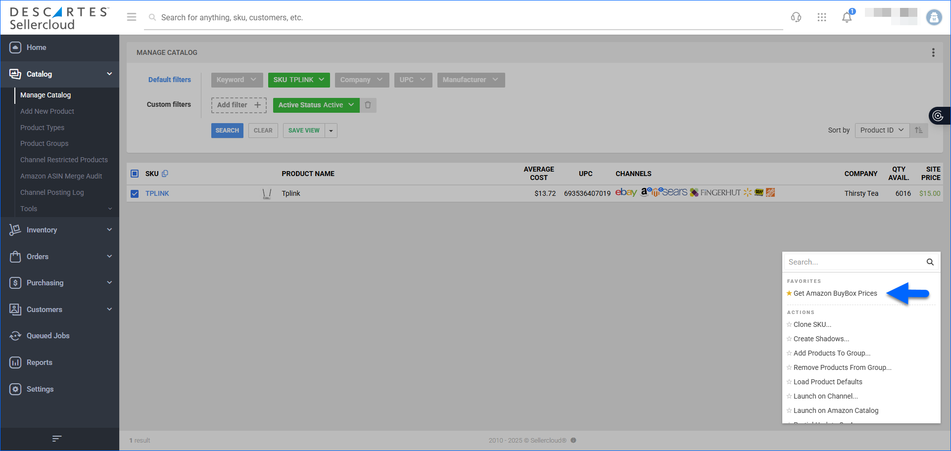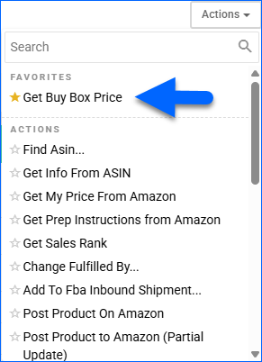 - Access the Actions menu and click Get Amazon Buy Box Prices.