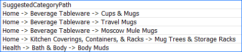 - You can see the suggestions under the SuggestedCategoryPath column in the following format: Parent Category -> Child Category -> Product Type. Now, to apply the suggestions you like, see how to Import Categories in bulk below.