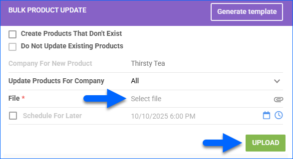- Back on the Bulk Product Update page, click File, and select the updated file.