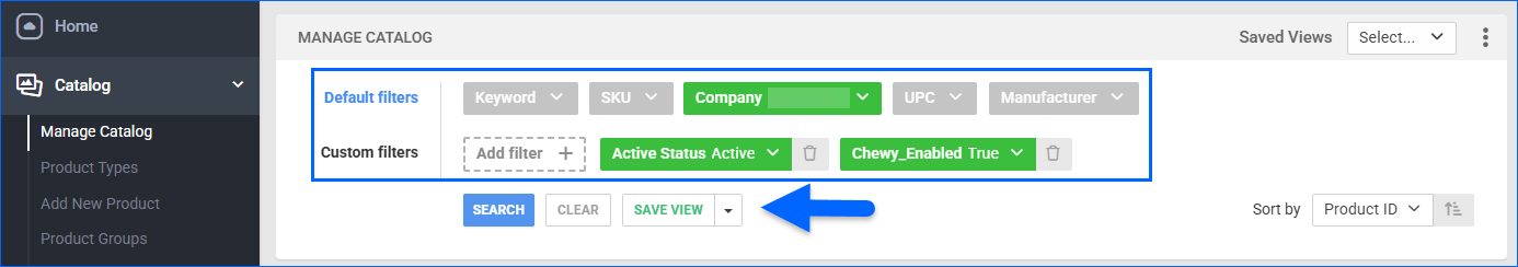 - Company – Select the company with the products you want to sell on Chewy. Without this filter, you will send products from all companies.