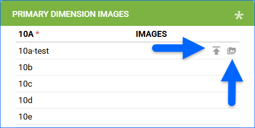 - In the Primary Dimension Images panel, hover over the dimension to reveal two options: