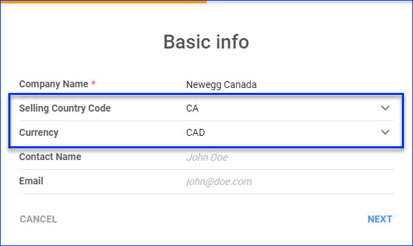 If you are a Newegg.ca seller, you can integrate your Canadian account with the steps shown above on a Sellercloud company set up for Canada. Simply follow the steps to Create a Company and set the Country Code to CA and the Currency to CAD.