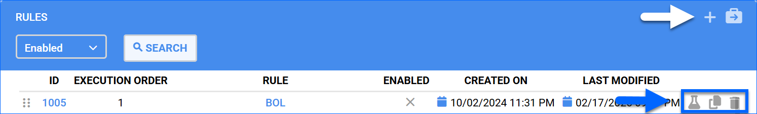 You can create, test, copy, and delete rules under Settings > Orders > Rule Engine > Manage Rules.