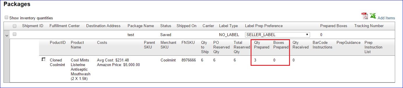 - The qty prepared will display on the FBA inbound shipment.