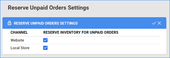 - Website (Shopify) and Local Store Orders – You can go to Settings > Orders > Reserve Unpaid Orders Settings and check the boxes for these two channels. This will ensure that if an order is created as Local Store or downloaded from Shopify as Unpaid, we will reserve the necessary quantities.