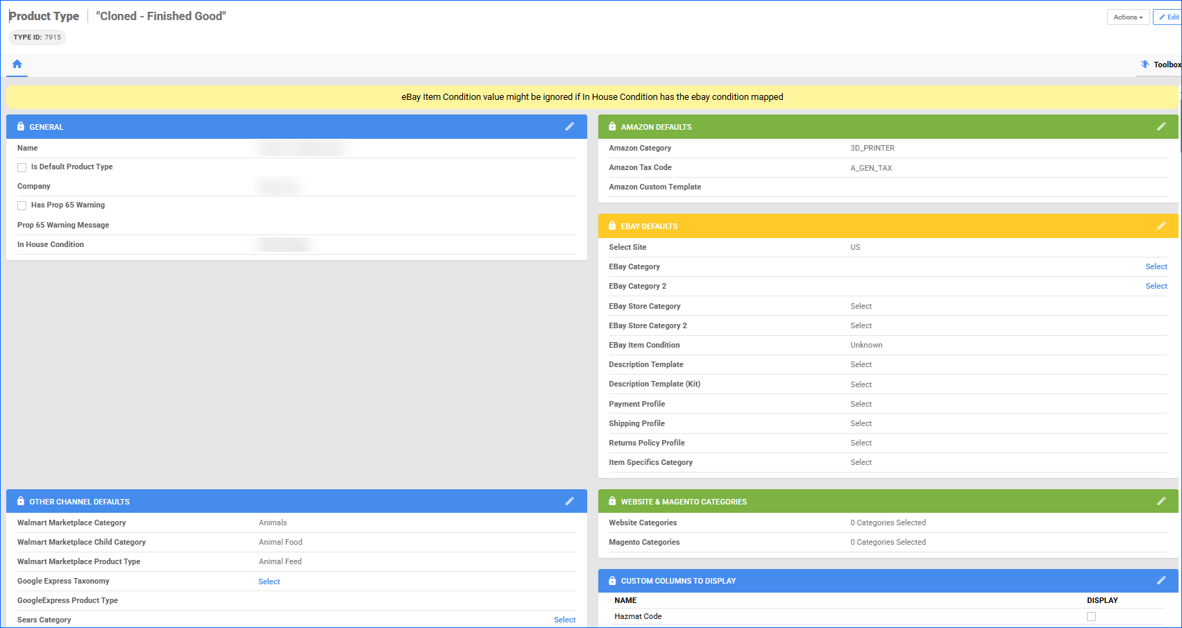 - Click Clone. This action creates a completely new Product Type with all the information already configured.