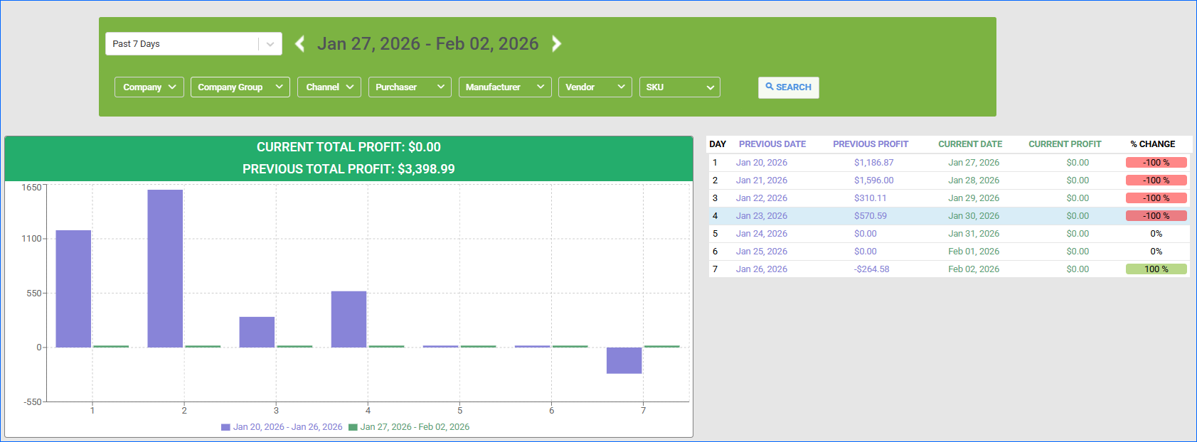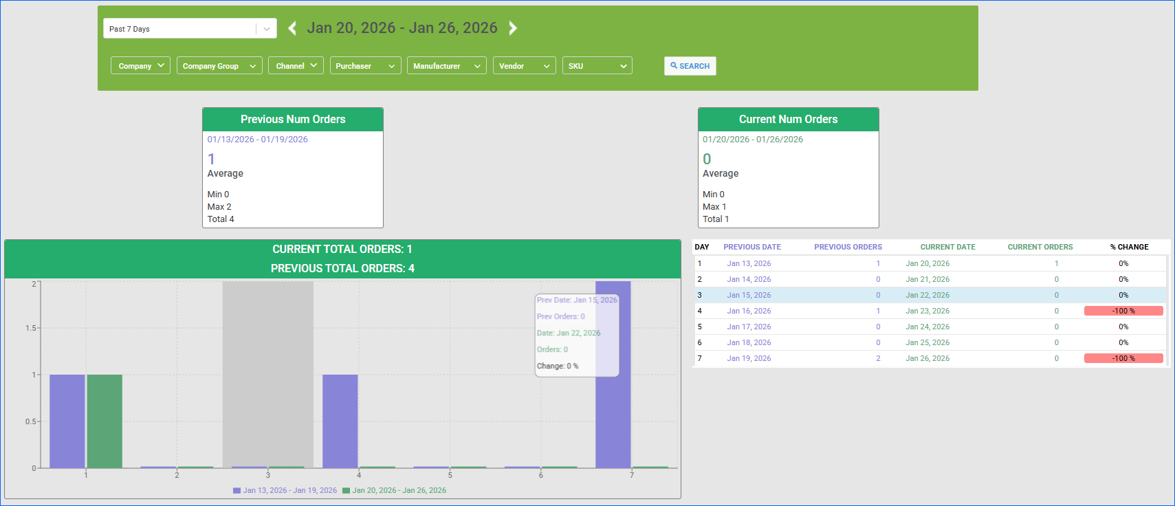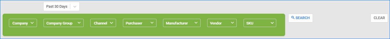 - Use the Custom Filter to add Company, Company Group, Channel, Purchaser, Manufacturer, Vendor, or SKU filters.