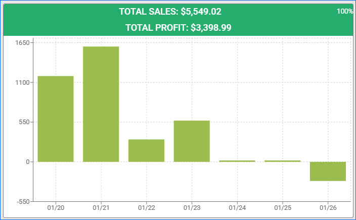 This section indicates the minimum, maximum, and average daily profit for the chosen time period.