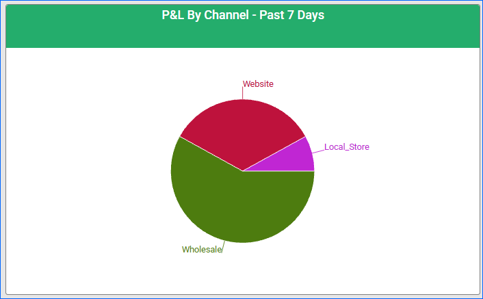 This section lets you analyze the P&L by channel for the selected time period. It is displayed as a graph with percentage values, which makes it easy to visualize the data.
