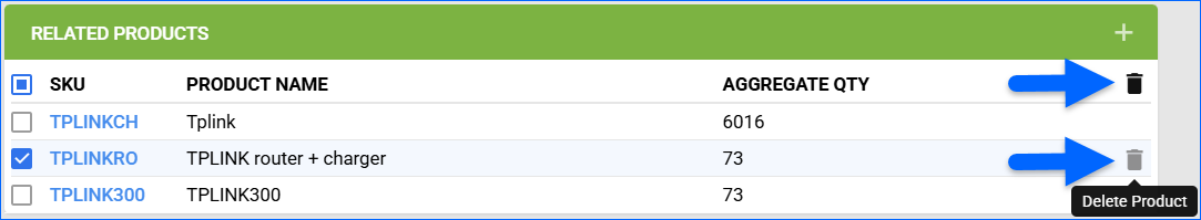 You can easily remove related products, by clicking the bin icon next to the unnecessary SKU, or at the top to remove all selected products.