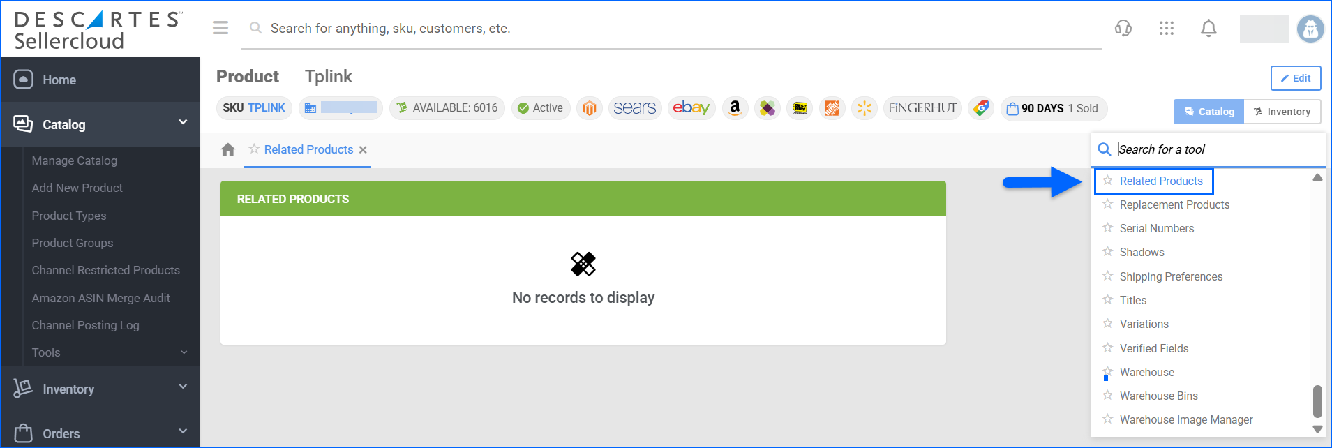 - Navigate to Catalog > Manage Catalog and open the product you want to add related products to.