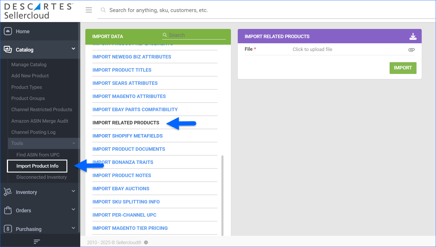 Sellercloud allows you to modify product relations in bulk via a file upload: