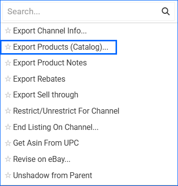 - In the bottom right, click the Actions menu icon, and select Export Products (Catalog).
