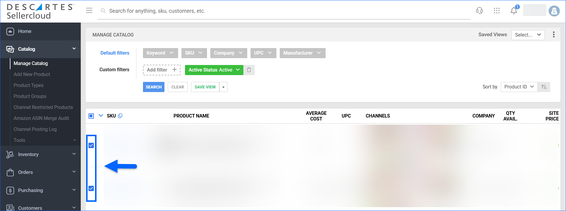 - Navigate to Catalog > Manage Catalog and select the SKUs whose Related Products you want to export.