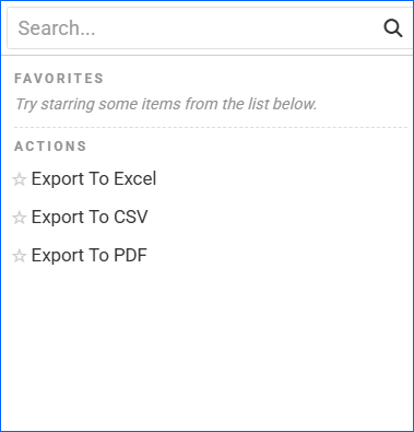 - To export the full report to a spreadsheet, click Actions on the bottom right and select Export to Excel. Spreadsheets include all columns, including those hidden in the report.