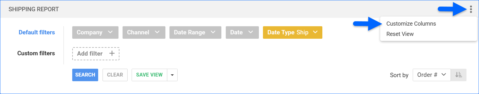 | Date Type | Select between Ship or Order to change how the SHIP DATE column works.