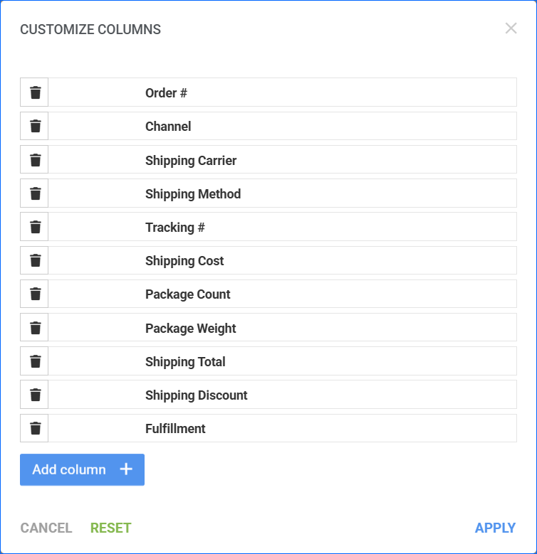 - Costs – shipping cost, shipping discounts, and shipping total.