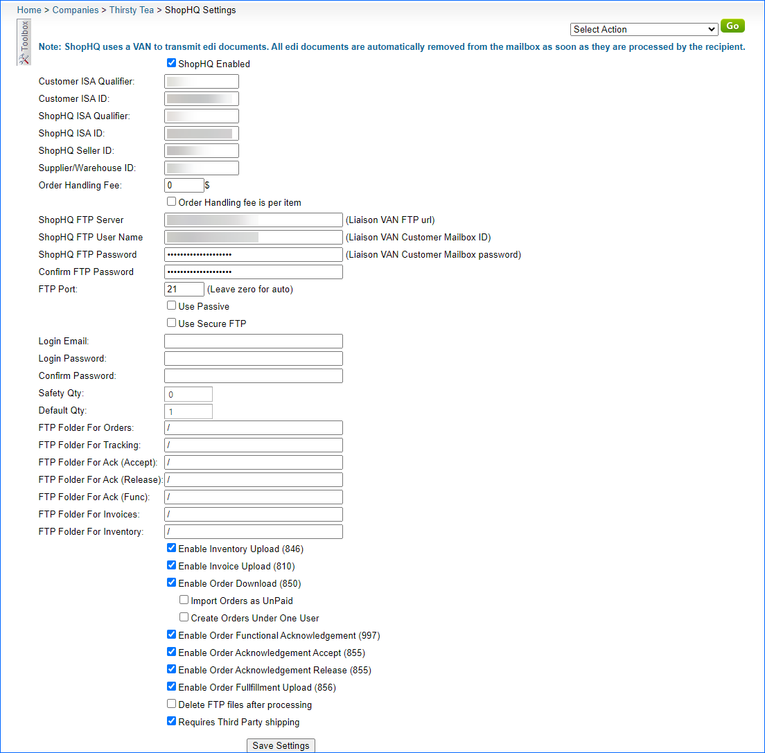 | Enable Order Fulfillment Upload (856) | Automatically update the order status on Shop HQ with tracking information and ship date. |