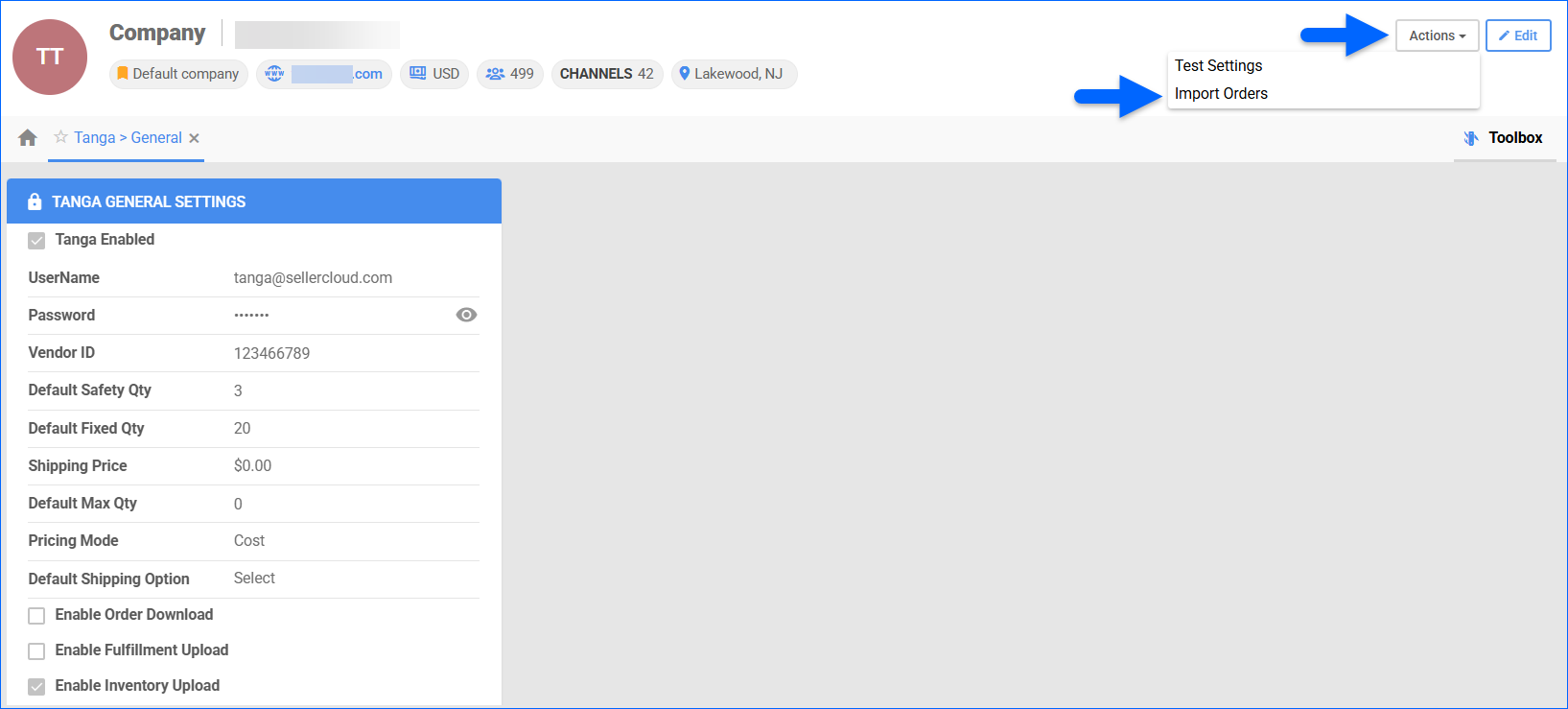 - Enable Order Download – Download orders from Tanga to Sellercloud automatically.