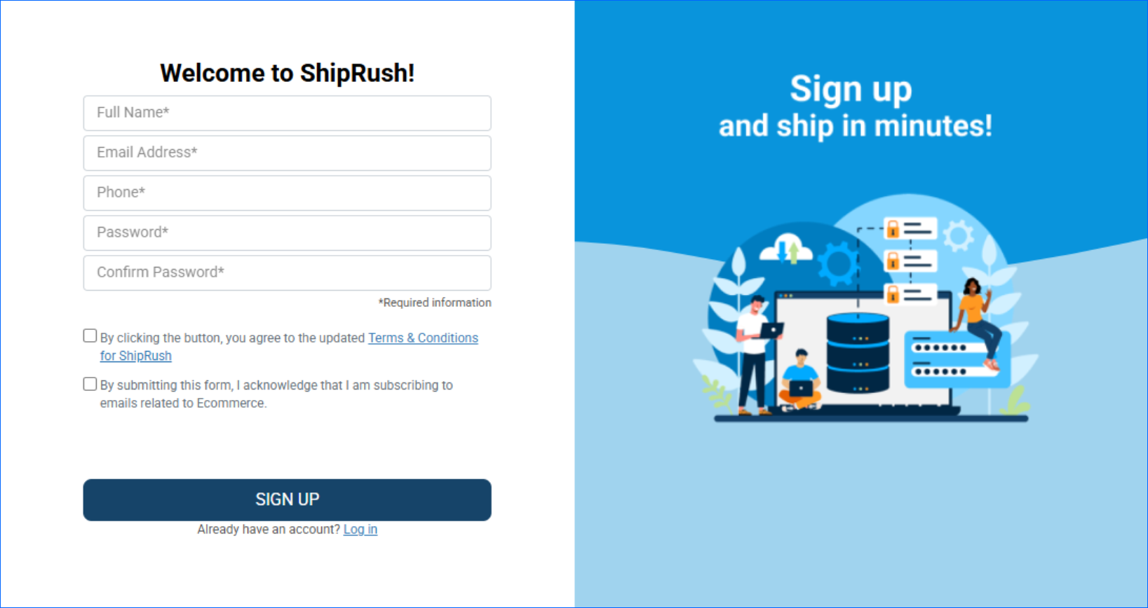 To create a new ShipRush account: