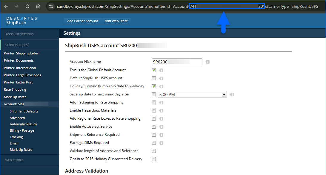 - Locate your Shipping Account ID. It typically depends on how you set up ShipRush and which carrier you’re using. In this case, you must locate your USPS Account ID (Show me where!).
