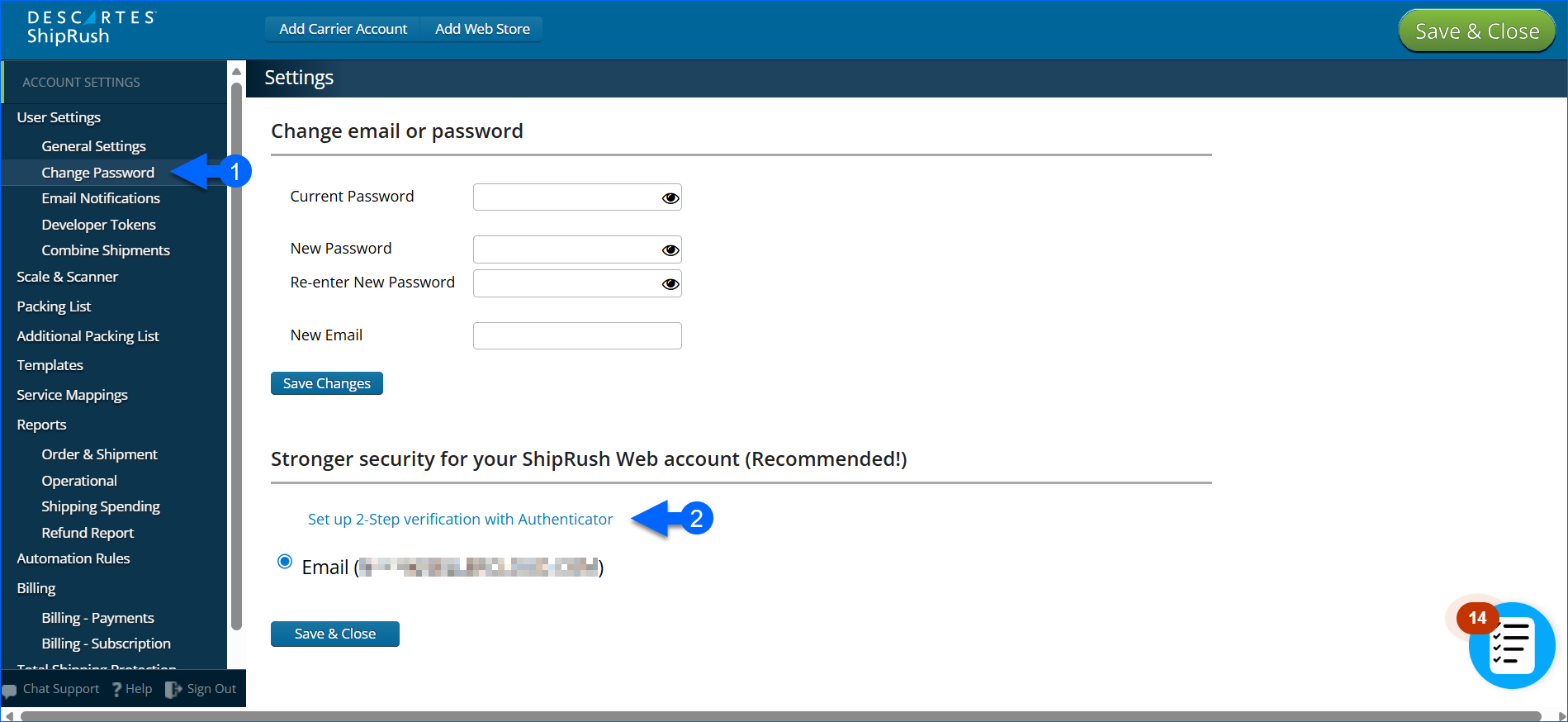- Enable Two-Factor Authentication (2FA). ShipRush requires 2FA before API tokens can be generated.